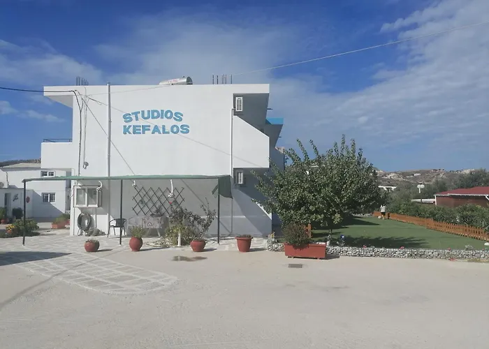 El hotel Kefalos Studios Stamatia, de 3 estrellas, ofrece una terraza y está a una distancia de 2 km de la Basílica Antigua. El hotel también incluye un aparcamiento privado gratuito.